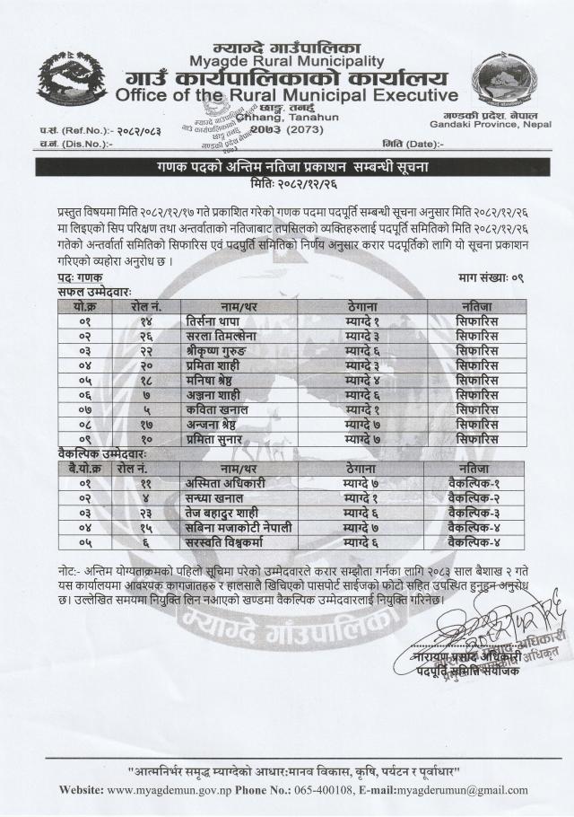 गणक नतिजा प्रकाशन सम्बन्धि सूचना।