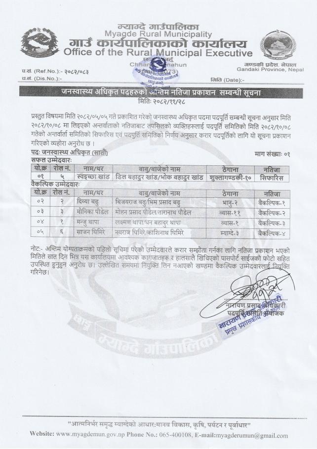 जनस्वास्थ्य अधिकृत पदको नतिजा प्रकाशन सम्बन्धमा।