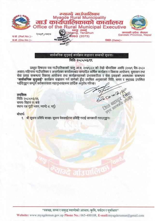 » आ.व. २०७९/८० को तेस्रो चौकासिक सार्वजनिक सुुनुवाई सम्बन्धी सूचना।