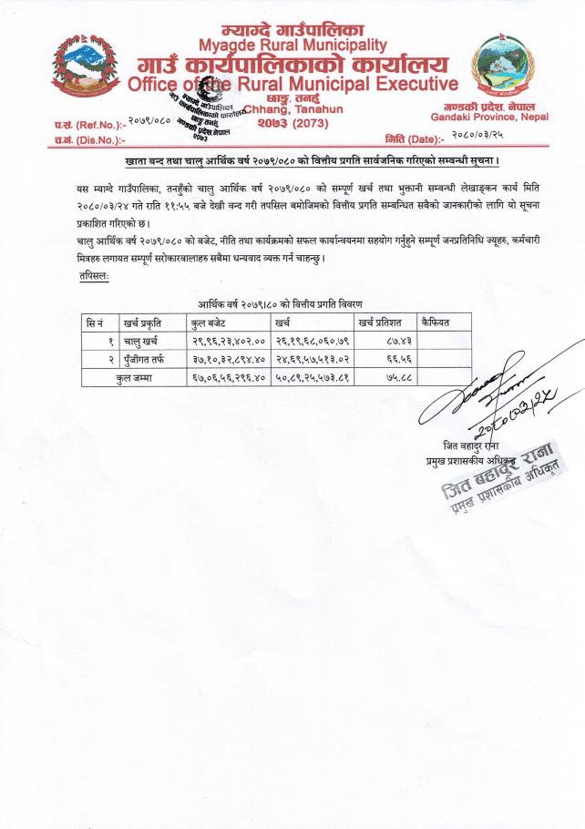 आ.व. २०७९/८० को वित्तिय प्रगति सम्बन्धी सूचना।