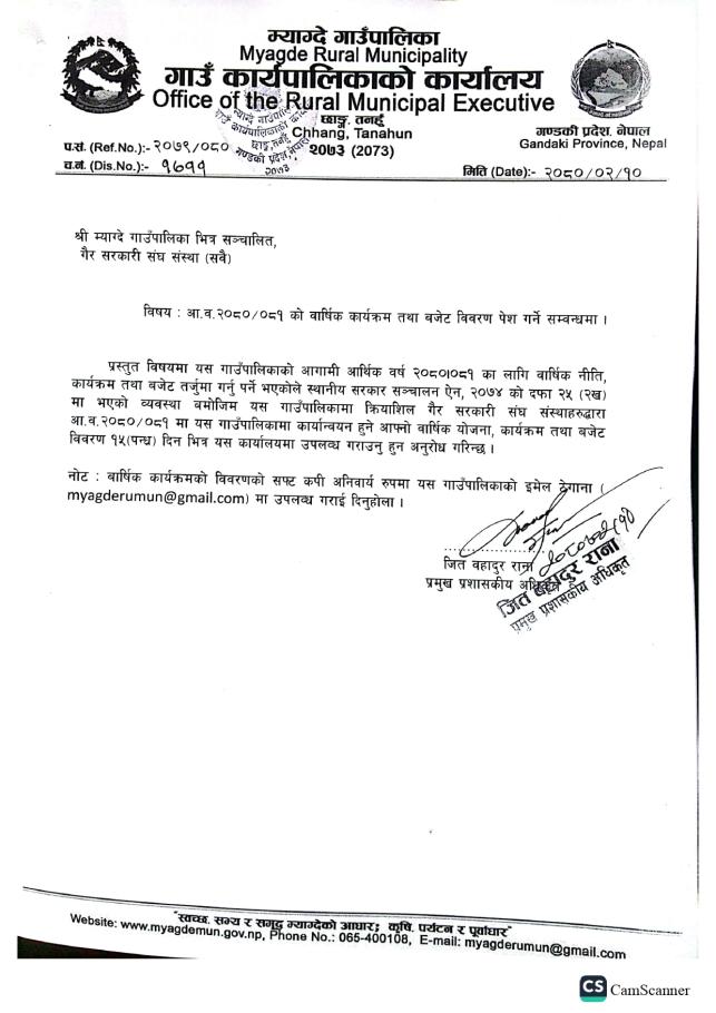 » आ.व. २०८०/८१ को लागि बजेट तथा कार्यक्रम पेश गर्ने सम्बन्धी सूचना।