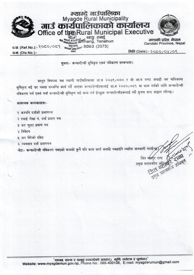 » कन्सल्टेन्सी नविकरण तथा दर्ता सम्बन्धी सूचना।