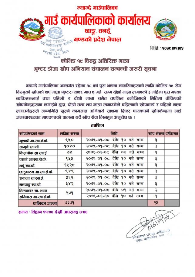 » कोभिड १९ विरुद्ध अतिरिक्त मात्रा खोप अभियान संचालन सम्बन्धी जरुरी सूचना