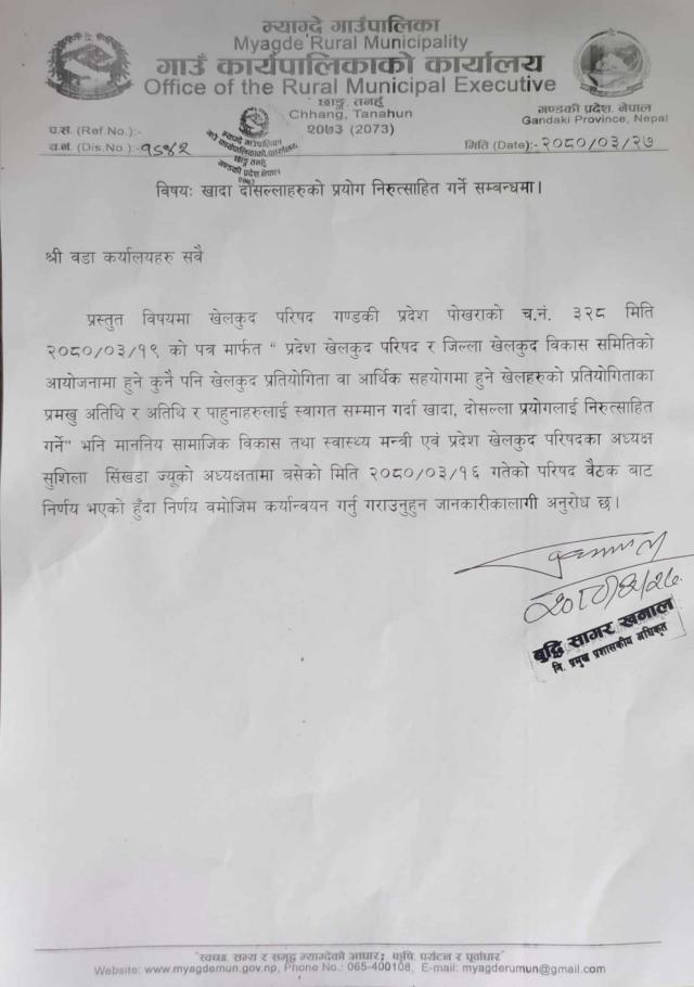 » खादा तथा दोसल्ला प्रयोग नगर्ने सम्बन्धी सूचना।