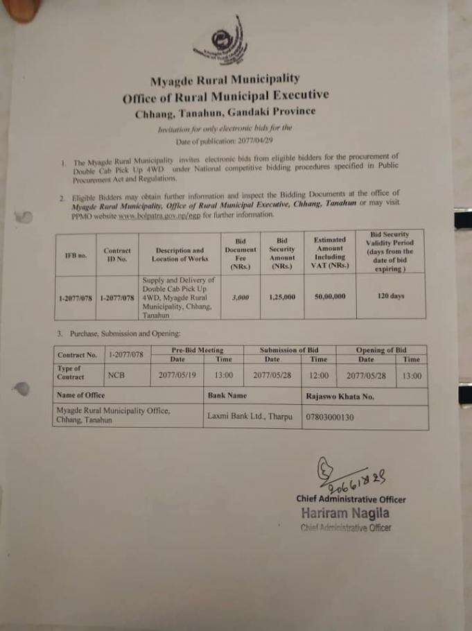 सार्वजनिक खरिद/बोलपत्र सूचना