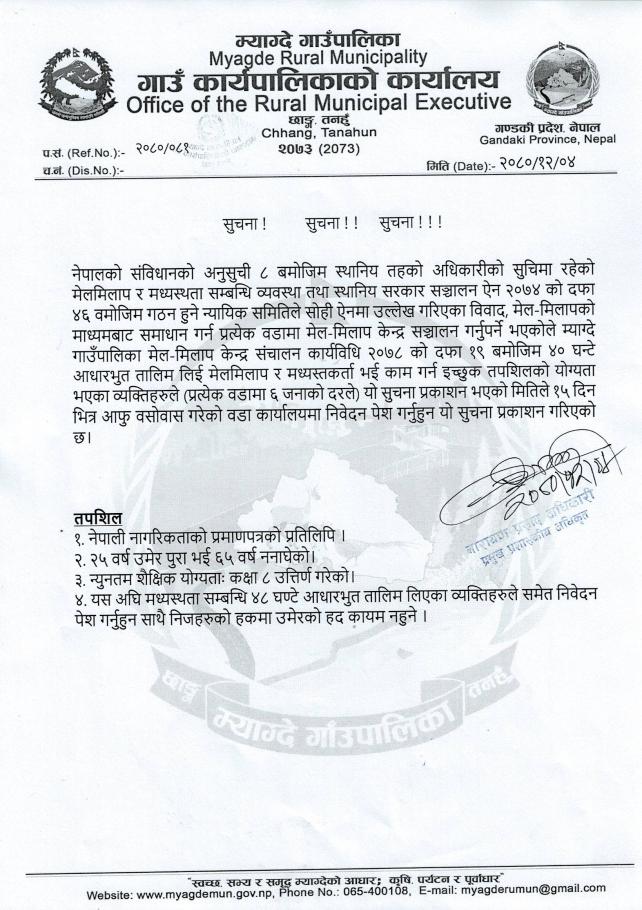 मेलमिलापकर्ता सम्बन्धि आधारभूत तालिम सञ्चालन सम्बन्धि सूचना।