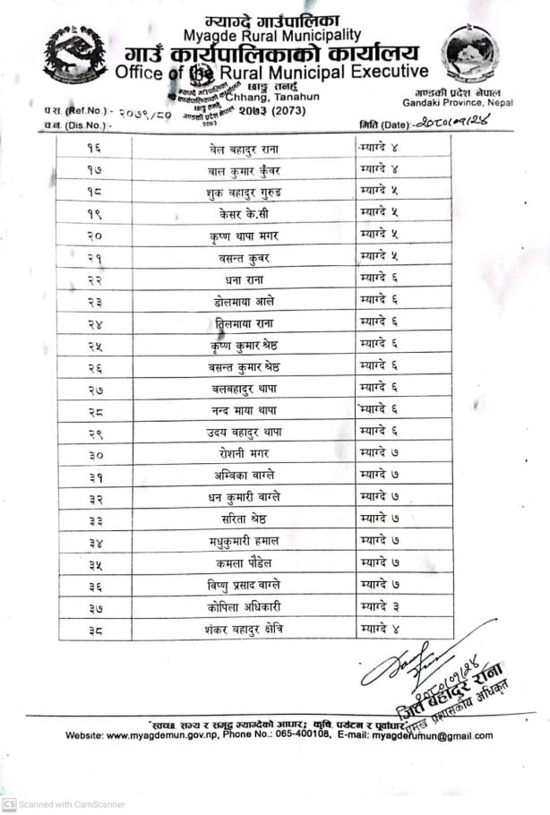 आ व २०७५।७६ काे लागि म्याग्दे गाउँपालिकाकाे दर रेट