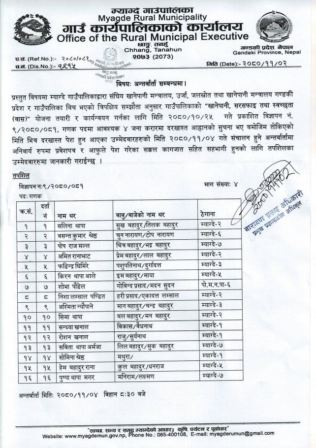 विज्ञापन नं ९/२०८०/८१ को गणक अन्तरवार्ता सम्बन्धि सूचना।