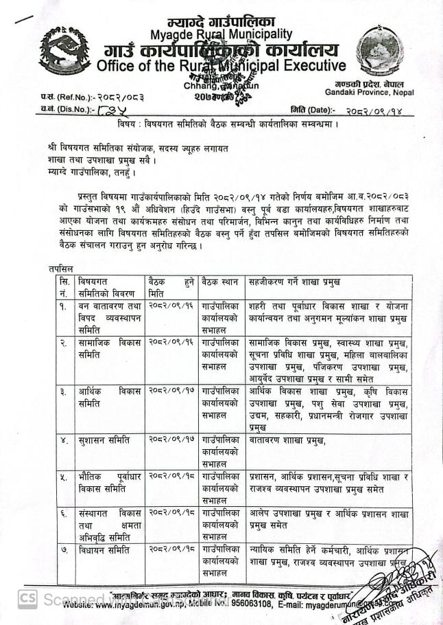 » विषयगत समितिहरुको बैठक सञ्चालन कार्यतालिका सम्बन्धि सूचना।