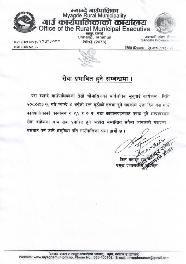 सेवा प्रभावित सम्बन्धी सूचना।