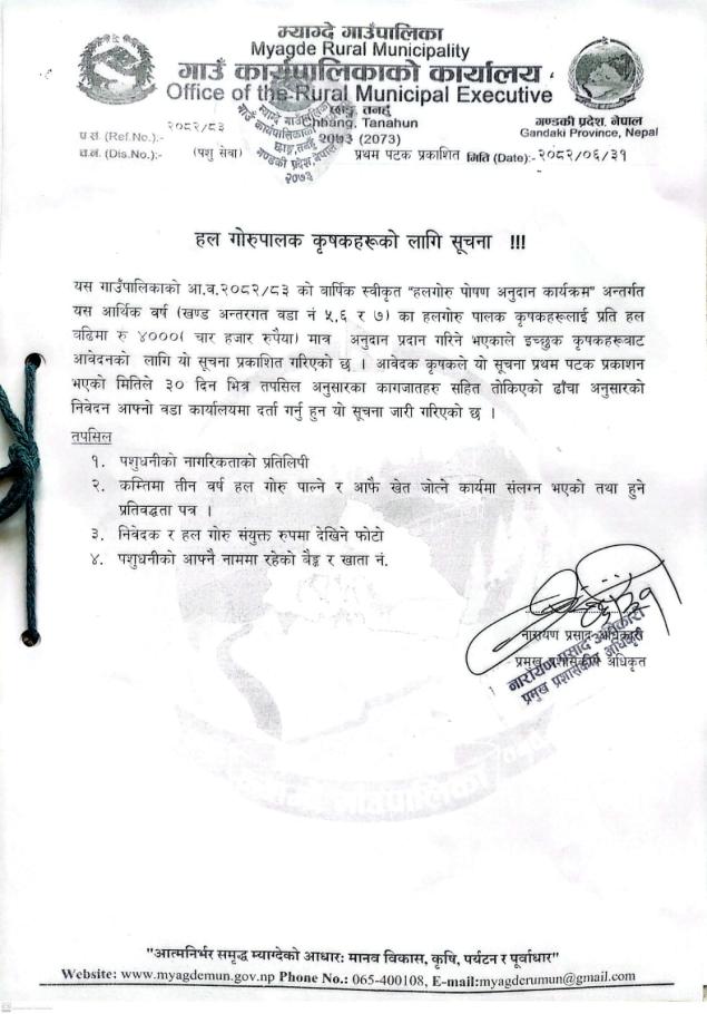 पशुपन्छी प्रवर्द्धन कार्यक्रम सञ्चालन सम्बन्धि सूचना।